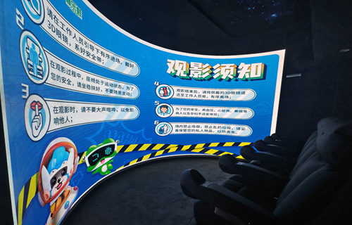 全新的沉浸式观影体验设备,旋转平台灵活转动,并提供逼真的运动模拟。旋转平台自动执行180度转向,使玩家面对宏大的弧形大投影幕。高清优质影片内容,为用户带来令人印象深刻的视听盛宴。